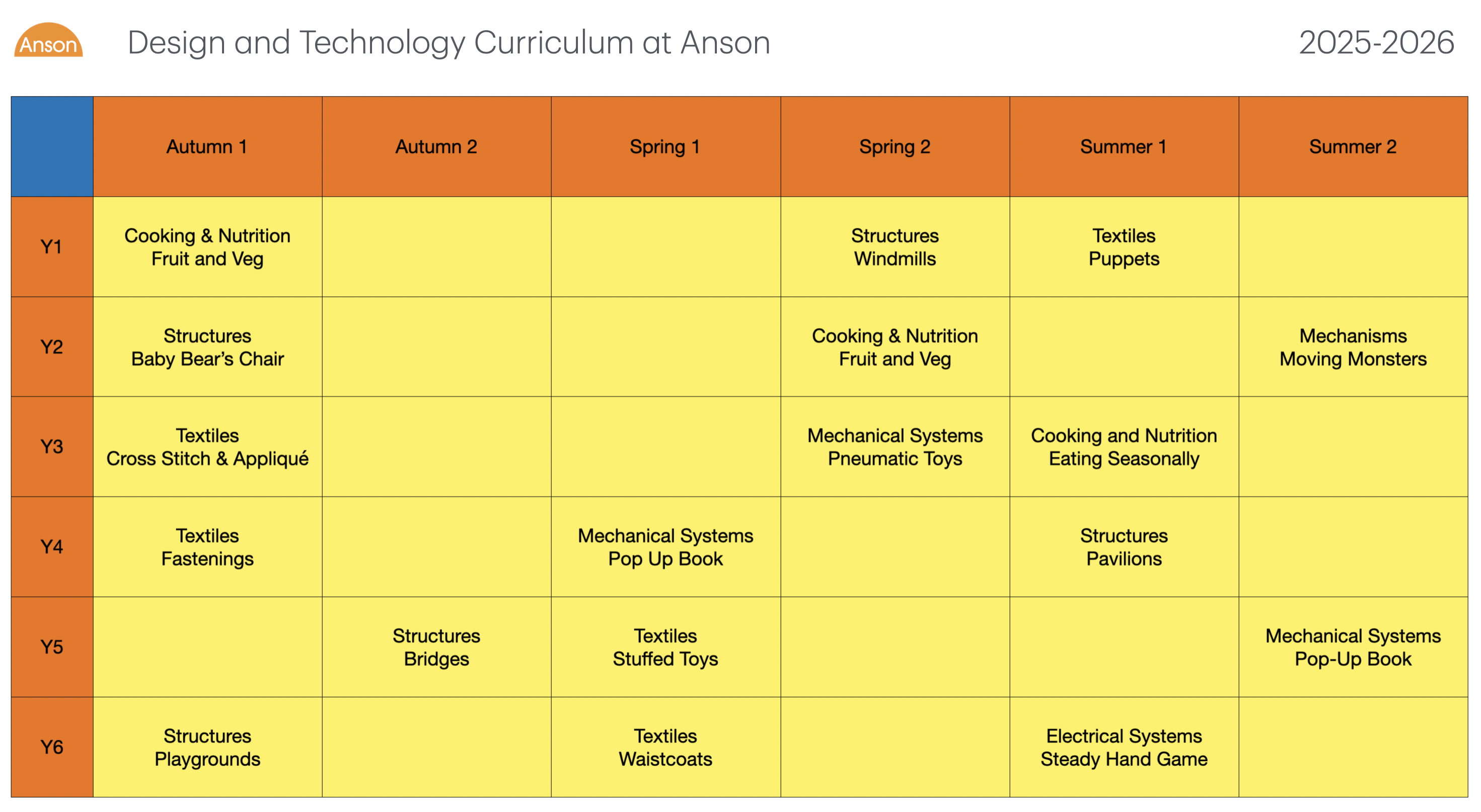 Design and Technology Curriculum 2025-2026